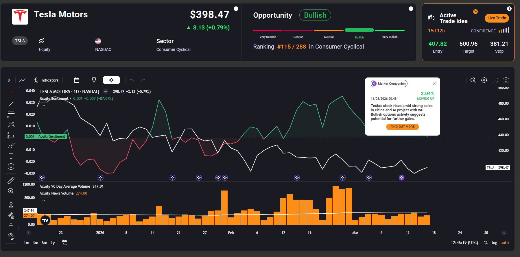 To keep the chart focused, Market Companion articles are only shown when they are linked to meaningful market performance thresholds. This means users see articles associated with more notable moves, rather than every available item in the feed.