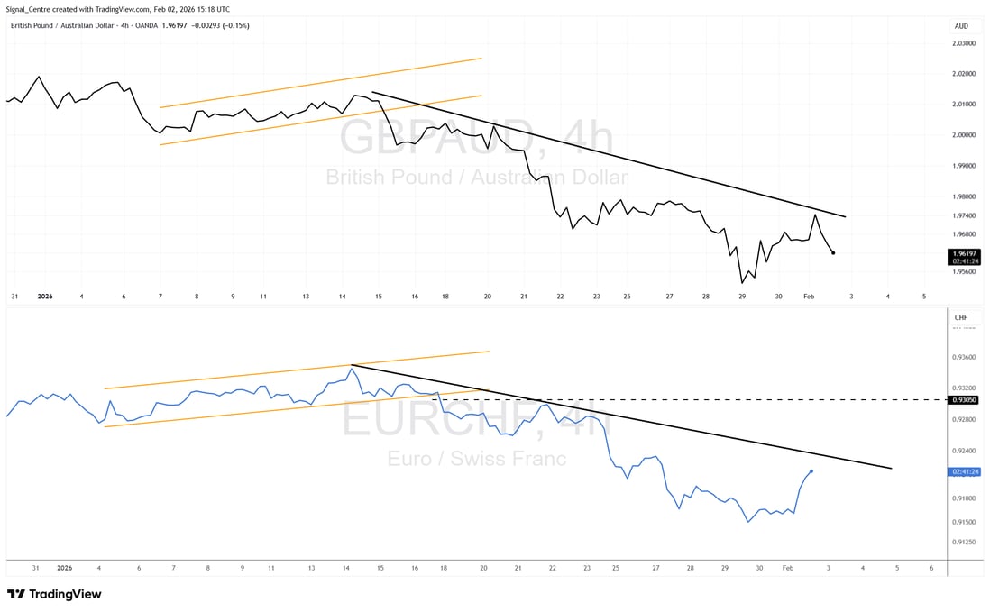 In contrast, EURCHF (blue line) was the weakest performer, posting a 13% win rate over 8 trades despite exhibiting a very similar technical structure. Both instruments began 2026 with corrective channels followed by downside breaks, yet EURCHF suffered from compressed volatility and poor continuation. The divergence reinforces a key lesson: similar charts can produce very different outcomes, with instrument-specific behaviour and follow-through ultimately driving performance.